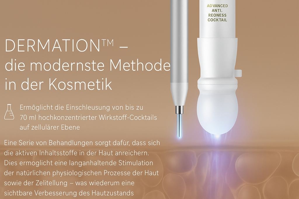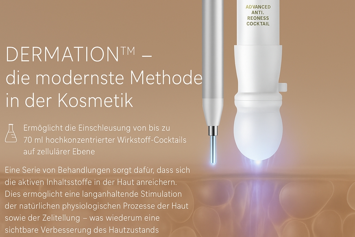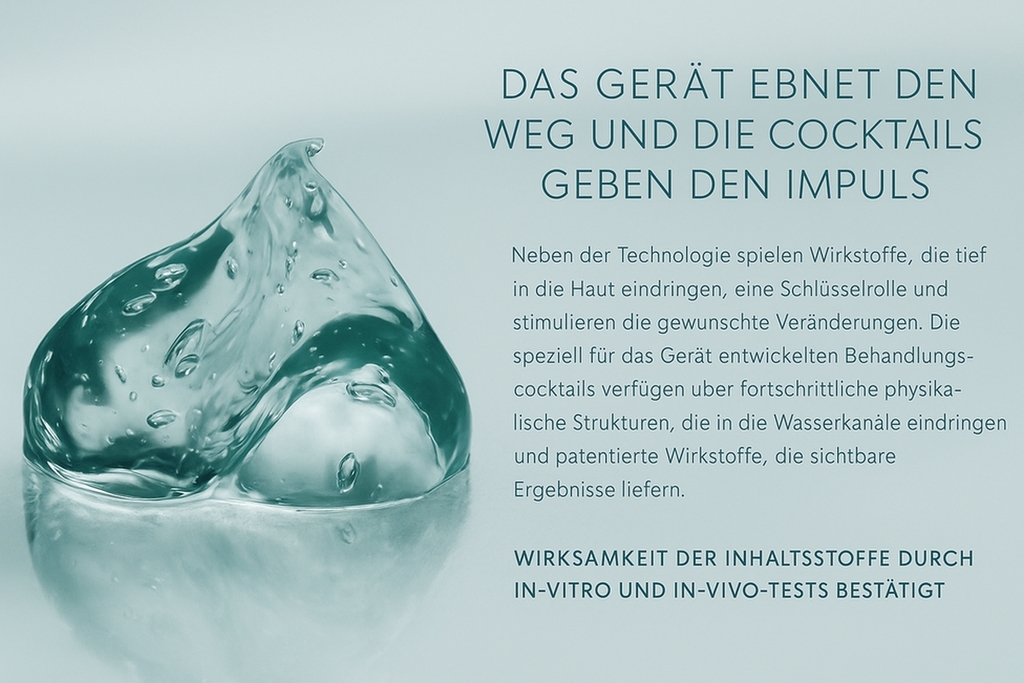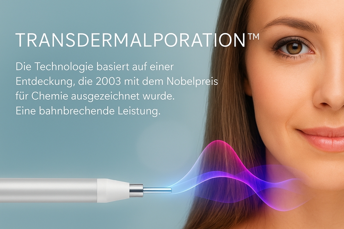 Eine nadel- und schmerzfreie Behandlung. Bis zu 70 ml aktiver Wirkstoffe werden durch die patentierte Transdermalporation-Technologie tief in die Haut transportiert um viele Hautprobleme zu behandeln.